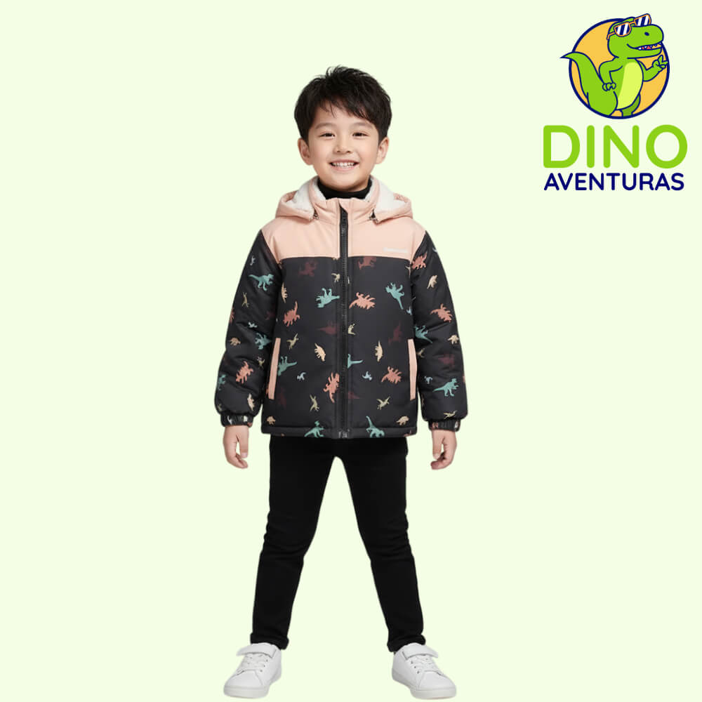 Abrigo Grueso Impermeable con Capucha Forrada de Polar para Jóvenes – Estampado Dinosaurio