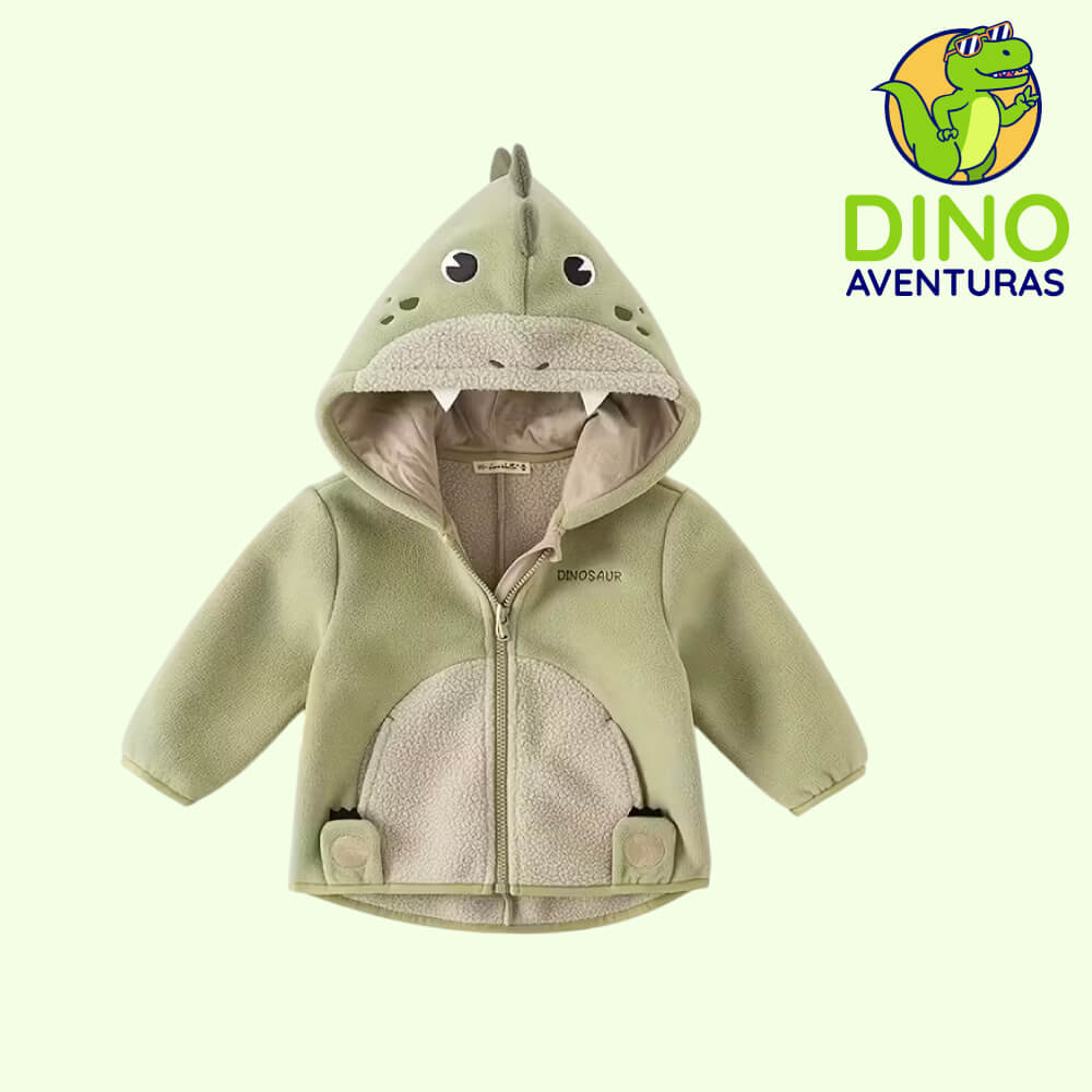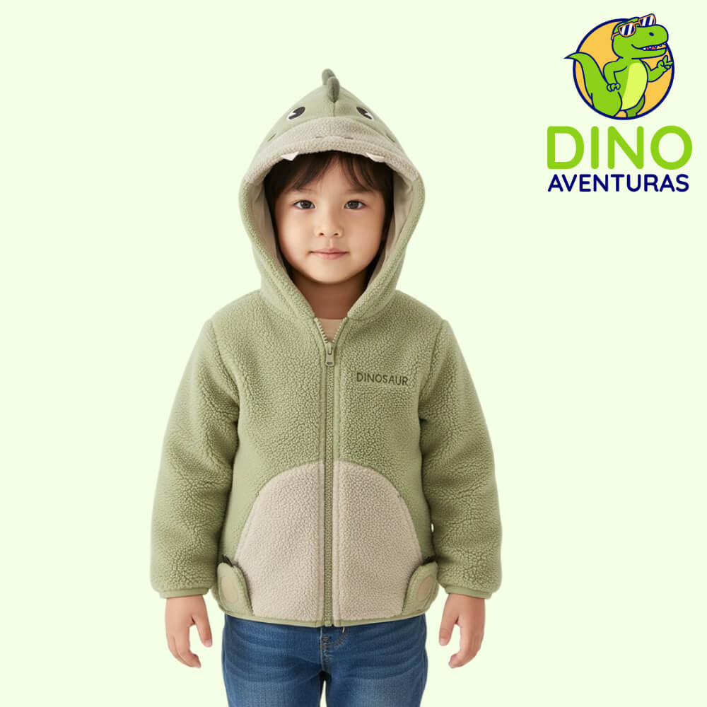 Casaca con capucha forrada de polar, diseño pequeño dinosaurio para niños.